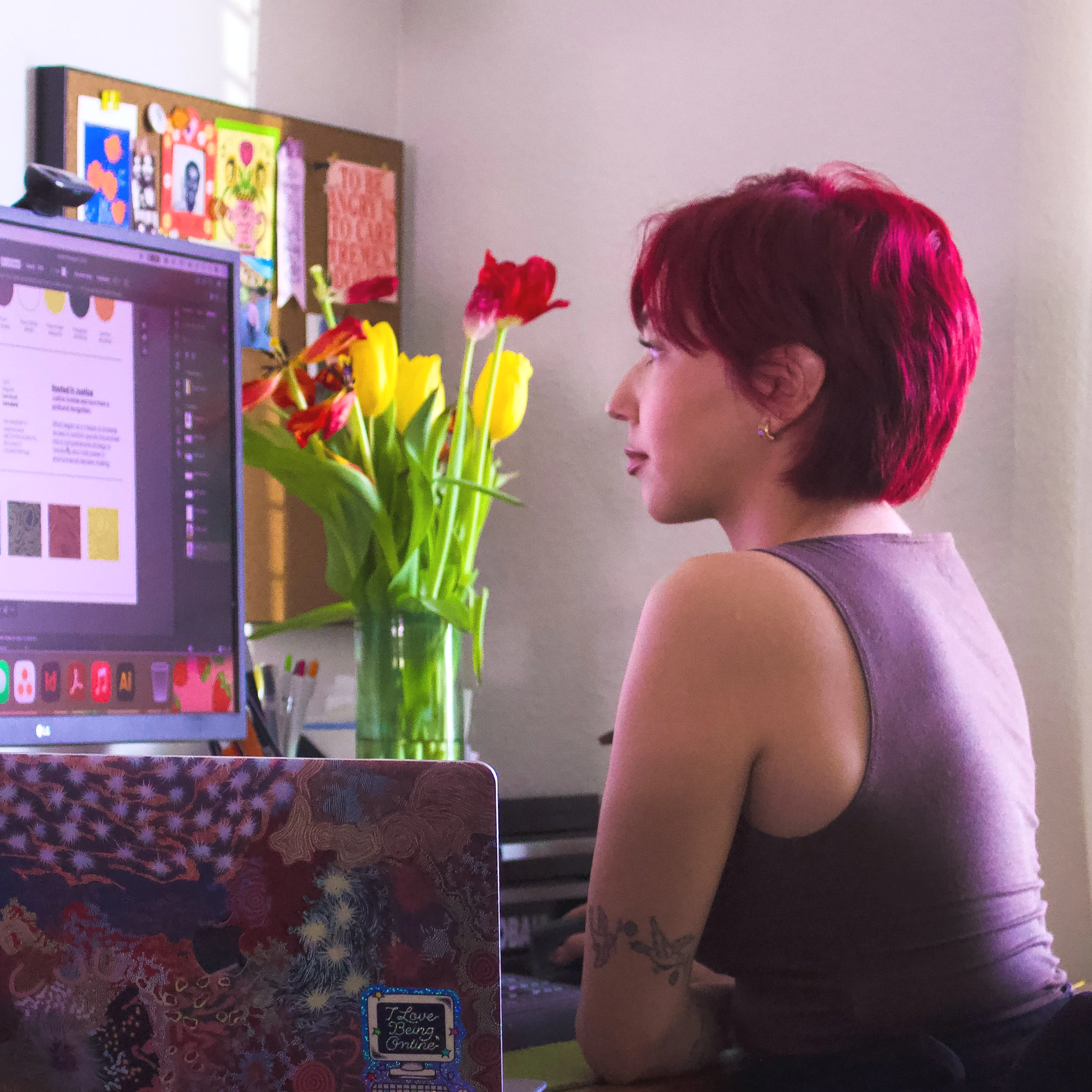 I offer a unique approach to design work with my background in art, media, culture, and community organization. My graduate studies in social work add an additional layer of intentionality to the visual work I create. Whether creating for myself or with a client, all of my work aims to build community, easily convey information, and prioritize accessibility.